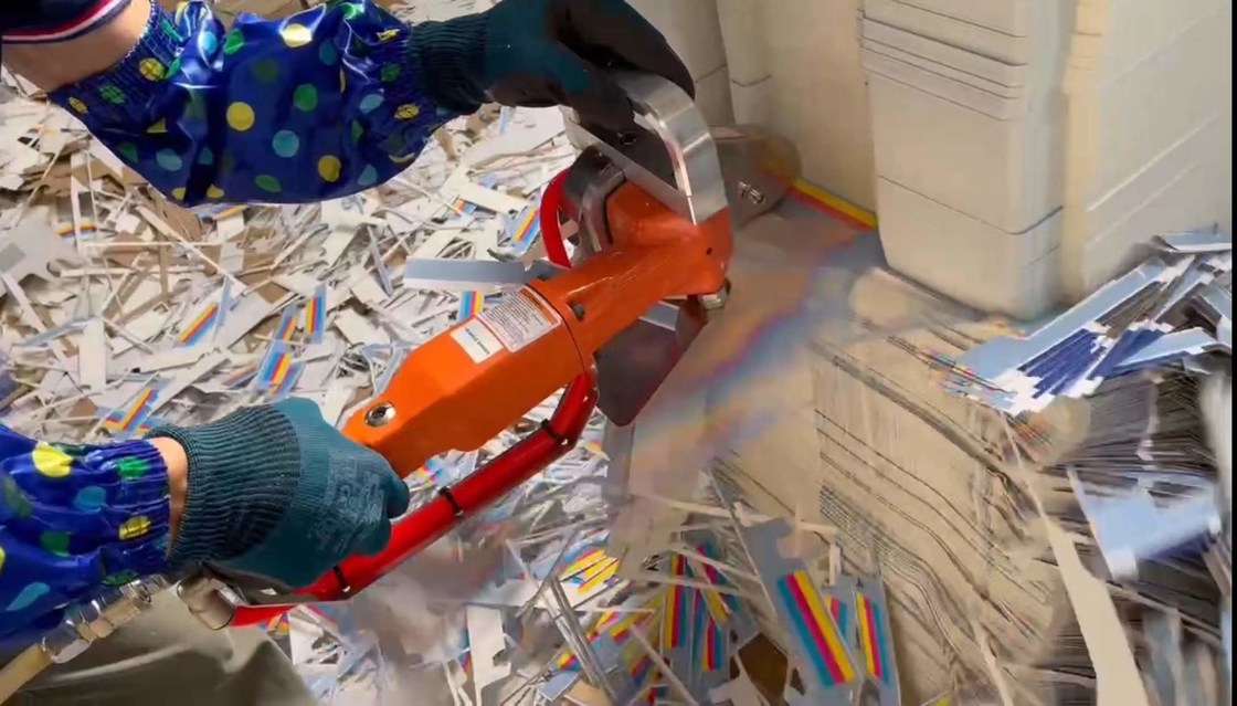 O desmontador de resíduos pneumático manual Graphica® é uma ferramenta avançada e prática para desmontar papel após o corte.