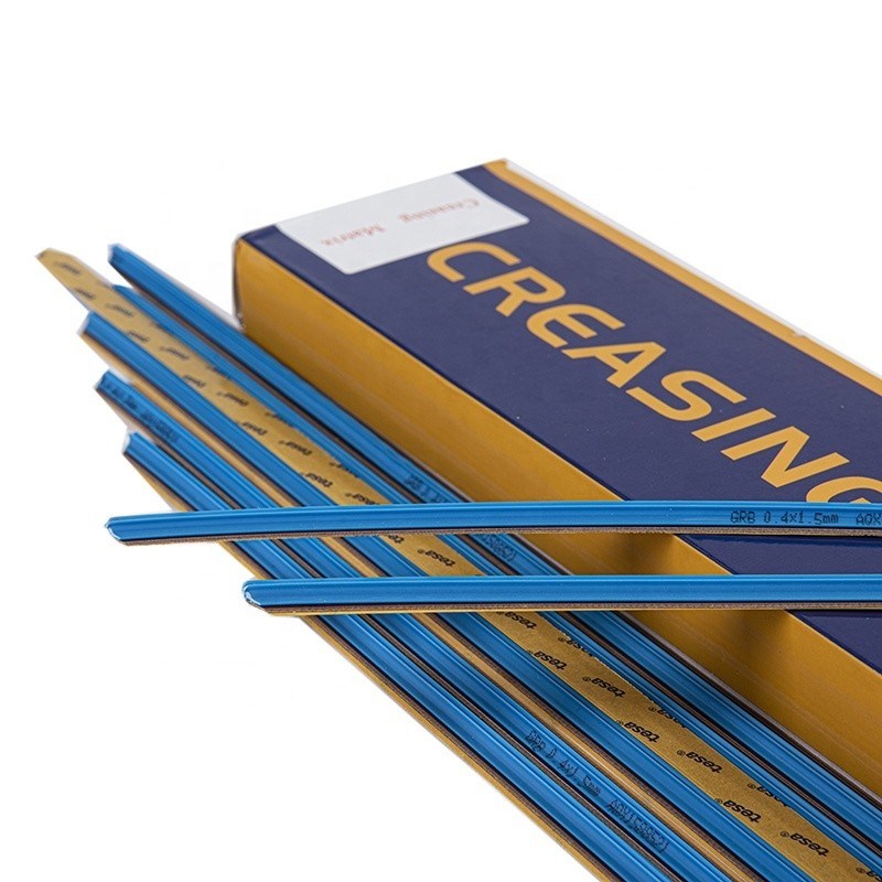 Por exemplo: espessura do cartão: 0,52 mm; espessura das regras de enrolamento: 0,71 mm, de acordo com a fórmula de cálculo: A=0,52≈0,5 mm; B=0,52 x 1,5 +0,71 = 1,49 ≈1,5 mm,Então nós devemos escolher o tamanho de 0.5 x 1.5.